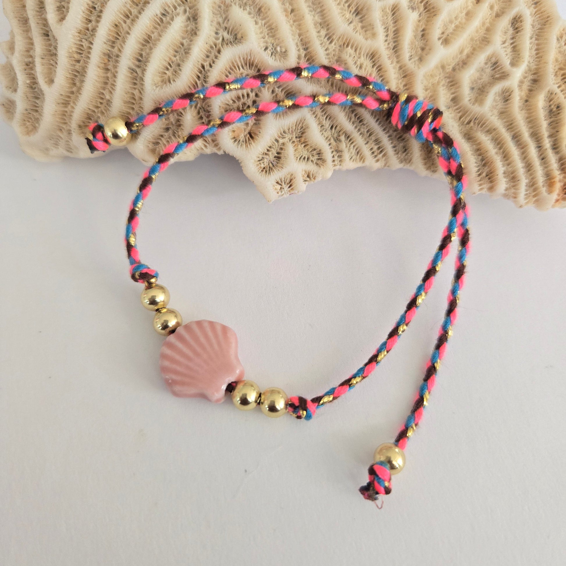 La Conchita Bracelet está hecha en hilo ajustable con detalles en stainless steel y una concha en cerámica como pieza central. Parte de la colección Mar Estrellado, es perfecta para usar a diario o combinar con el Conchita Choker.